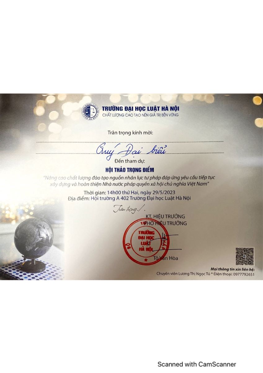 - Địa điểm: Hội trường A402 Trường Đại học Luật Hà Nội (87 Đ. Nguyễn Chí Thanh, Láng Thượng, Đống Đa, Hà Nội)
