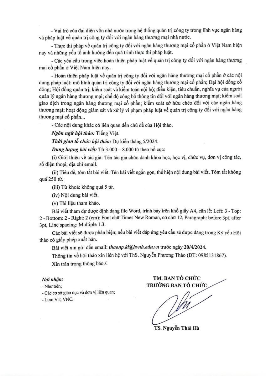 - Thời gian dự kiến tổ chức Hội thảo: Tháng 5/2024.
